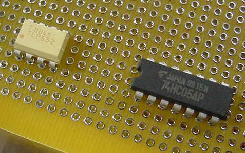 MIDI受信用のTLP552と、オプションですがMIDIスルー送信用の