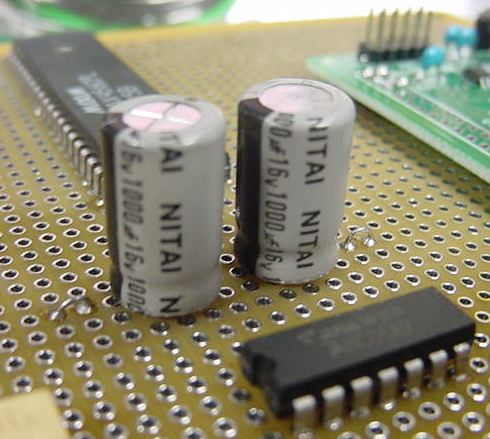 1000μFの大ケミコンを並べました。まぁ、気合いです(^_^;)。