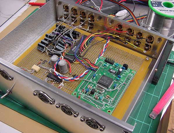 これはMIDI回りの配線です。ちょっとあとでミスが発覚したので、最終的
