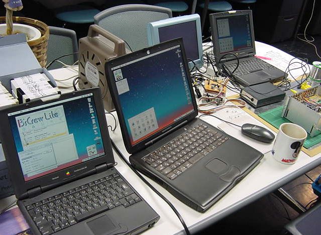 左のPowerBookは、DVDRAMにMOのデータをバックアップ作業している