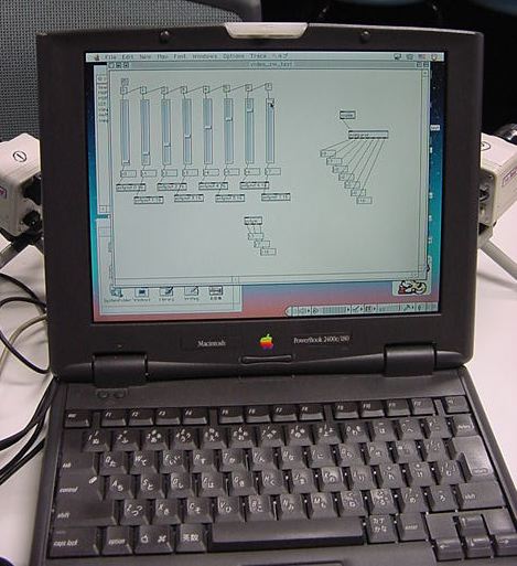 まず、制御側からのMIDIを送るために、Maxを走らせるPowerBookが