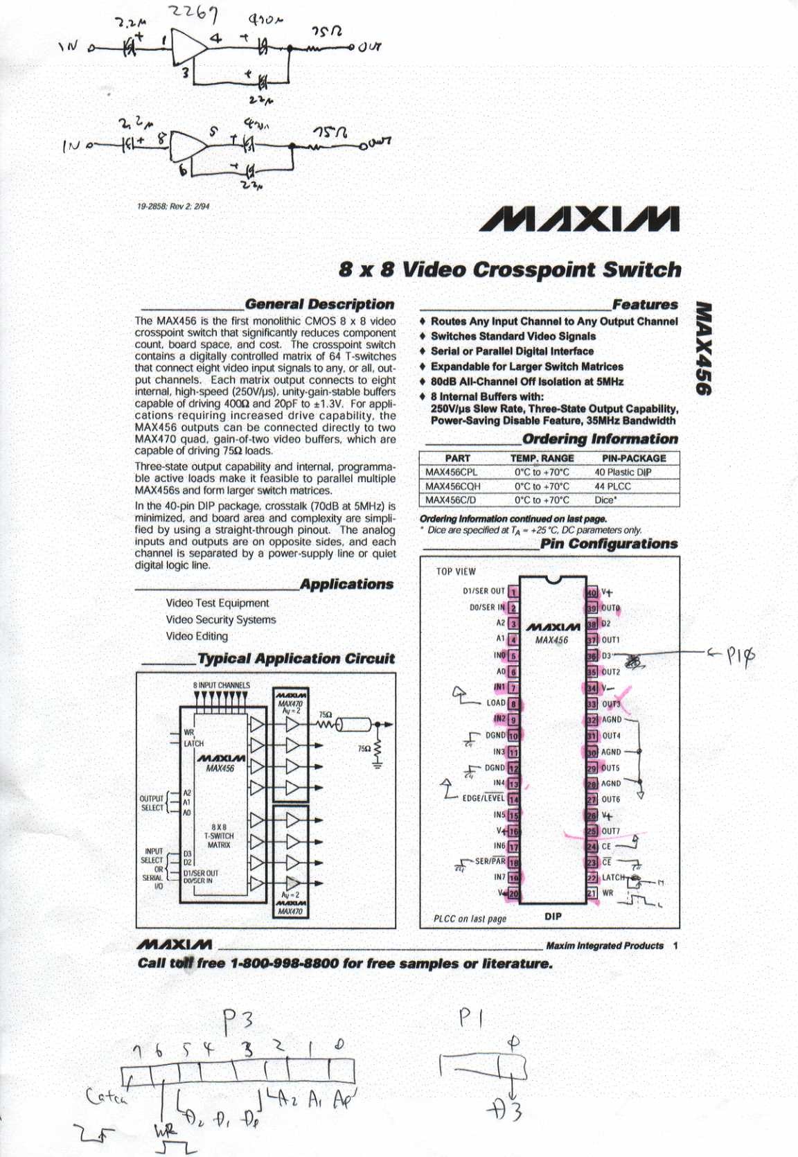 ビデオクロスポイントスイッチLSIのMAX456と、ビデオ信号
