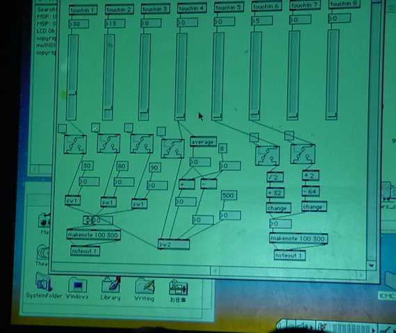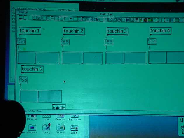 最初の作品形態では、センサゴムをはさみ対面で押す感じでしたが、