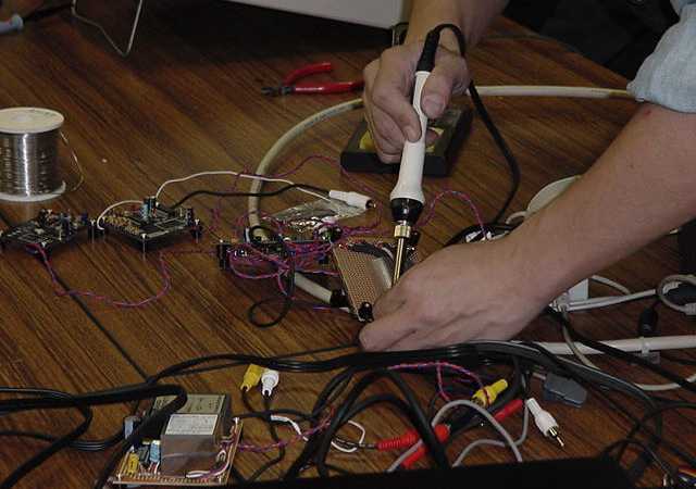 ために写真がありませんが、十数人で机を囲んでのハンダ付け
