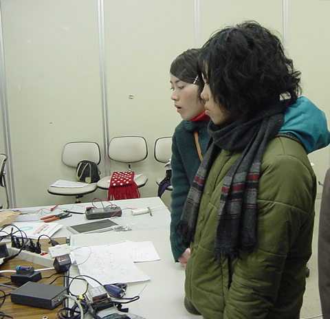 > 最初の作品形態では、センサゴムをはさみ対面で押す感じでしたが、