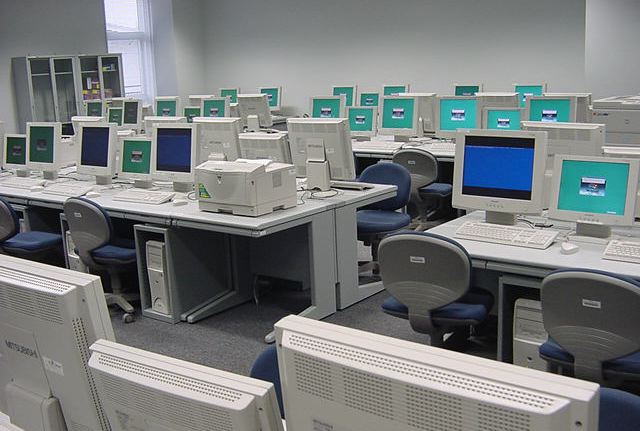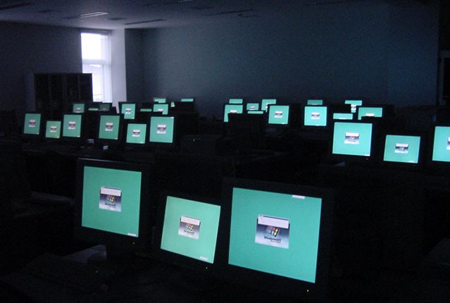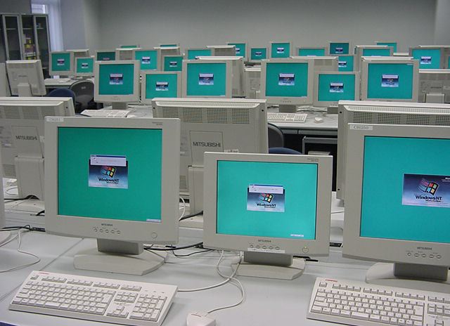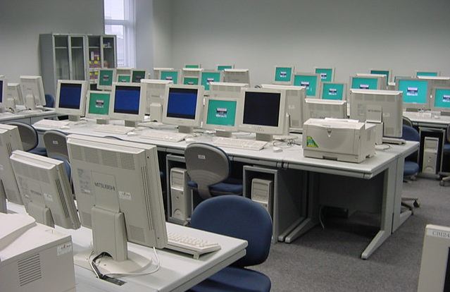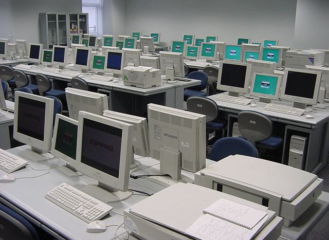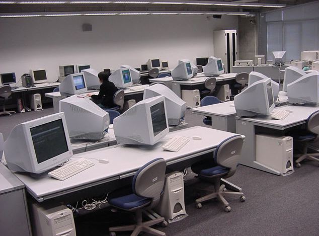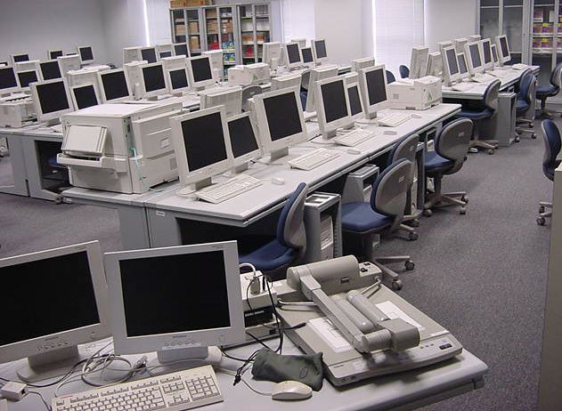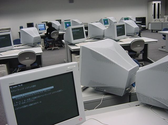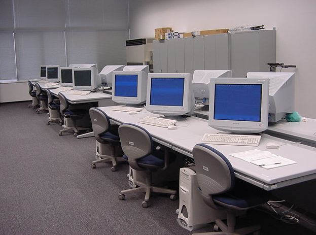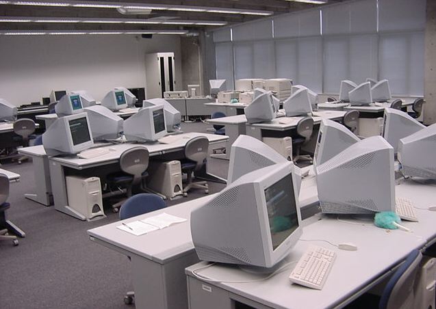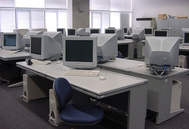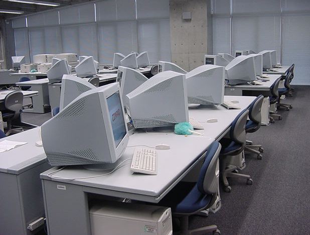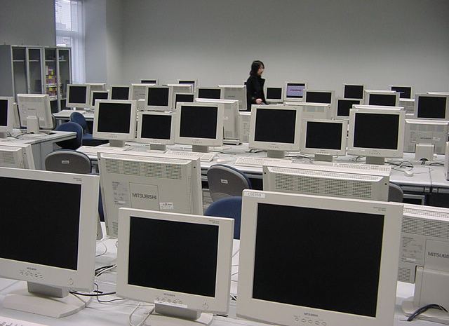 62台のWindowsパソコンが並ぶ407情報演習室に行きました。