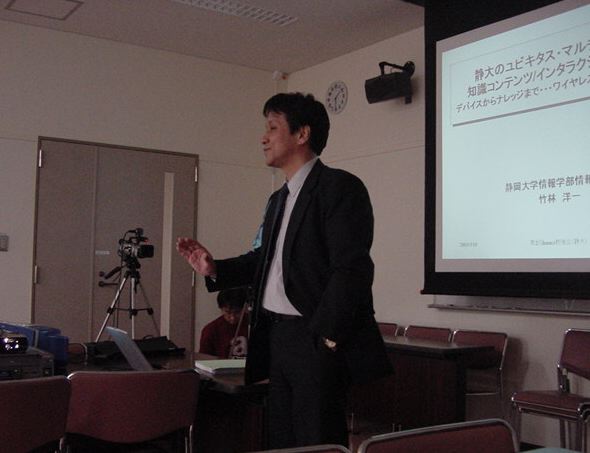まずは、ホストの静岡大学から、あいかわらず元気満載の 竹林先生のオープニングトーク。 今回、初めて参加のヤマハ軍団の皆さんは圧倒されたかな。 ★ ★ ★ ★