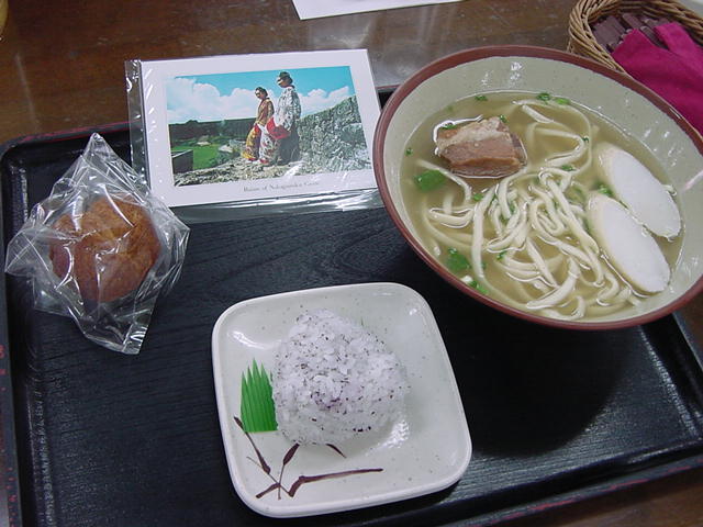 最初にお参りして、昼食に「沖縄そば」をいただきました。