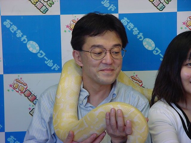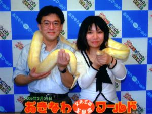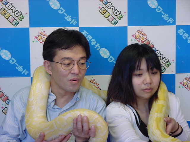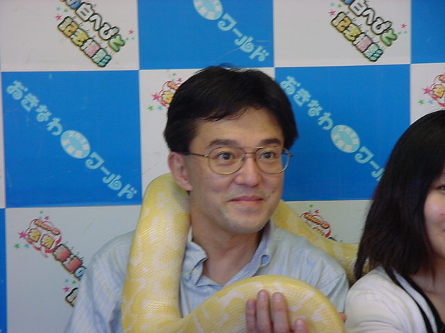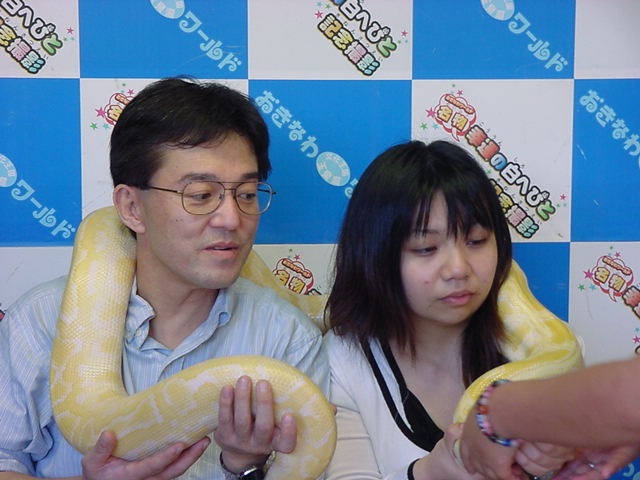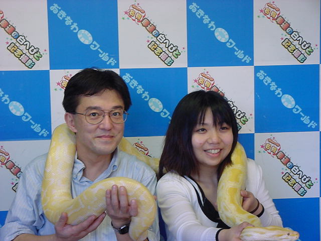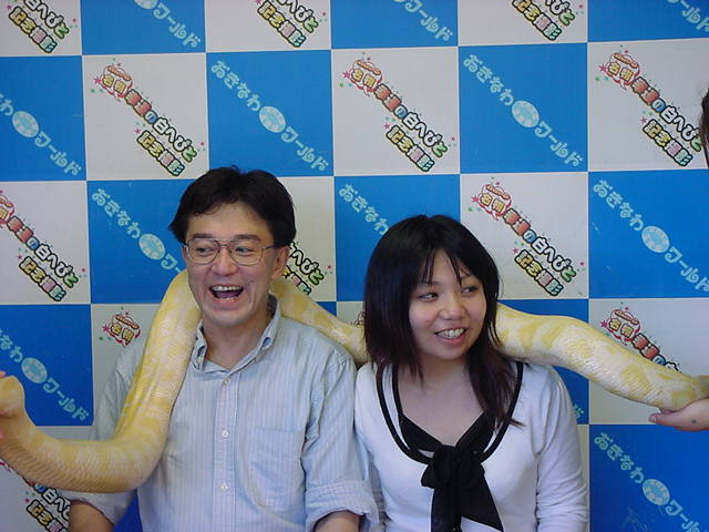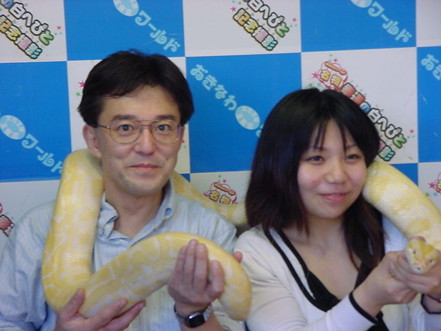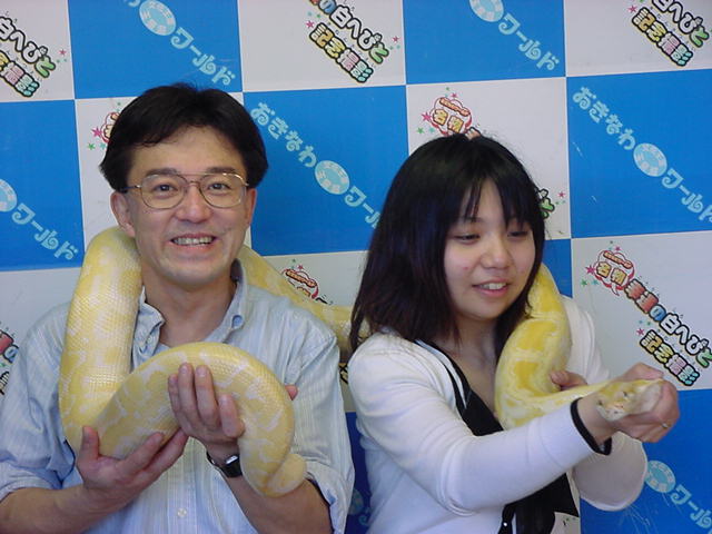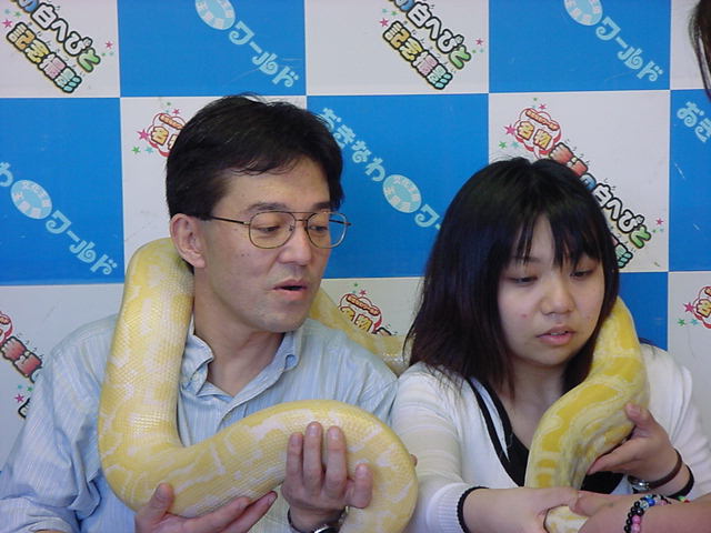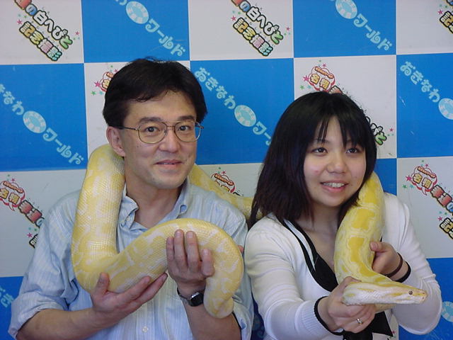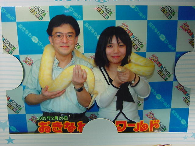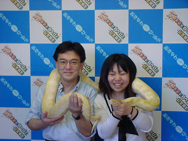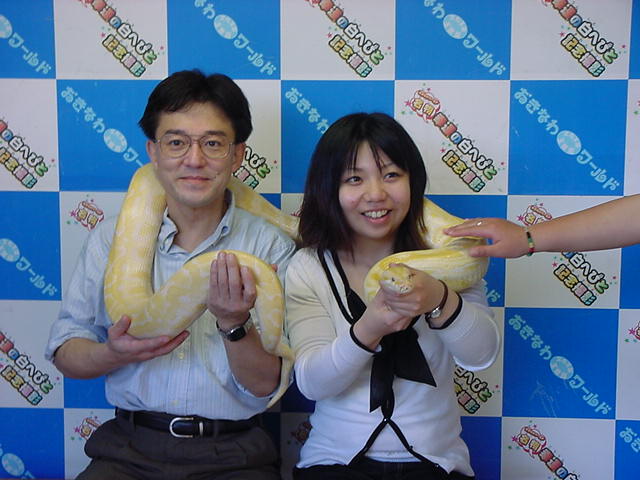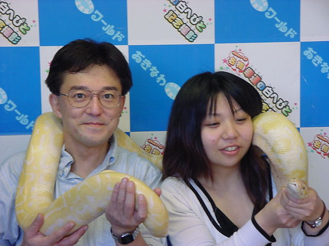 どうしても蛇を首に回して写真を撮りたい、という学生に付き合いました(^_^;)。