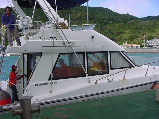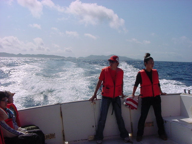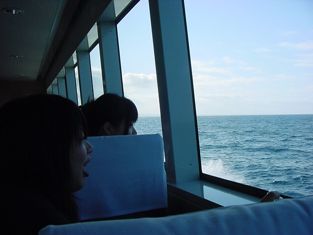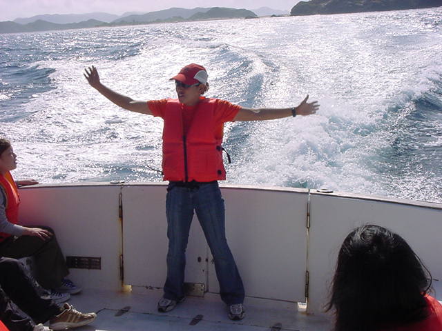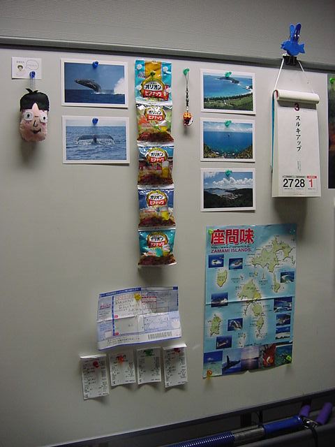 那覇に戻るともう19時。今回のホテルラッソは、「じんじん」まで徒歩2分と超至近です。 この晩には、いつも「じんじん」で再会している、琉球大学のshinji先生と、 さらに初めて、奥様にも御会いしました。 ★ ★ ★ ★ ★ ★ ★ ★ ★ ★ ★ ★ ★ ★ ★ ★ ★ 2日目となりました。 全国的に雪だったり寒かったりなのに、この日も沖縄だけは最高気温が26度の予報です。 まずは「とまりん」へ。 ★ ★ ★ ★ ★ ★ ★ ★ ★ ★ ★ ★ 高速船「クイーンざまみ」に乗り込みました。 ★ ★ ★ ★ ★ ★ ★ ★ ★ またまたやってきました、座間味島です。 ホエールウォッチングです。 ★ ★ ★ ★ ★ なんと、ガイドさんは前回と同じ、元気いっぱいのモモさんでした。 ★ ★ ★ ★ ★ ★ ★ ★ ★ ★ ★ ★ ★ ★ ★ ★ ★ ホエールウォッチングの写真は、現場海域に向かうところまででおしまいです。 とてもカメラでは鯨は撮れないので、ここからはビデオ撮影に切り替えました。 学生は3人とも船酔いで撃沈、ずっと船内で横になっていたのですが、 武士の情けで写真はありません。・・・というか、最後には僕もちょっとヤラレました(^_^;)。 ・・・さて、そのムービーの編集版(いろいろ圧縮)です。 これを観て、酔っても知りません。サウンドをヘッドホンで聞くとマシかと思います。 覚悟して観て下さい。なんと10頭ぐらいのザトウクジラが乱舞しています(^_^)。