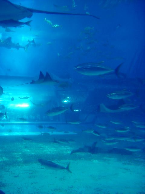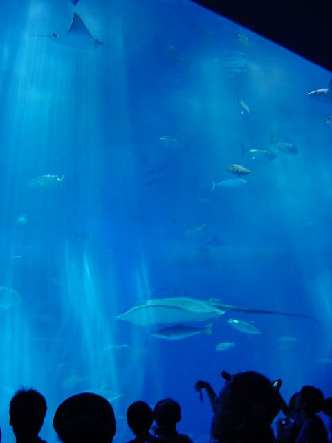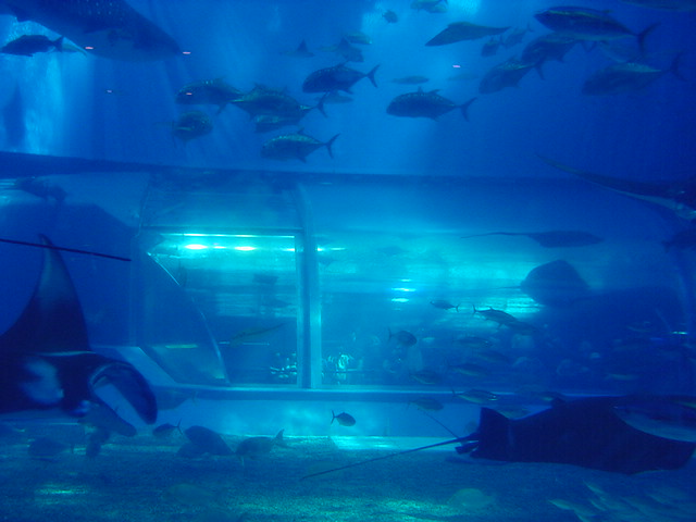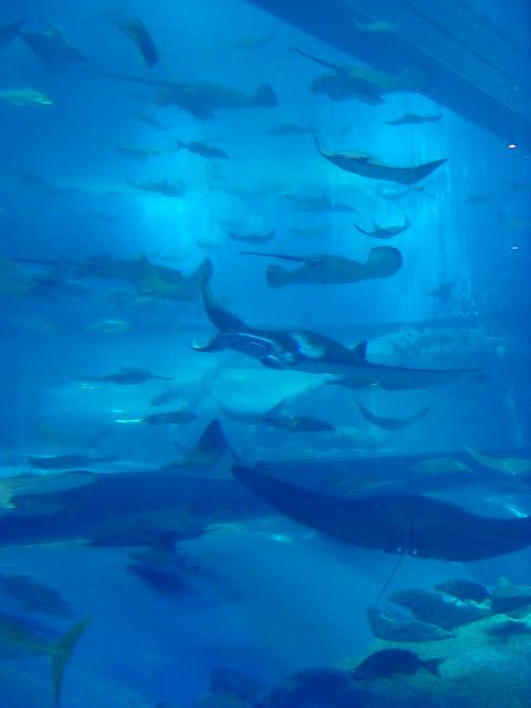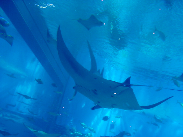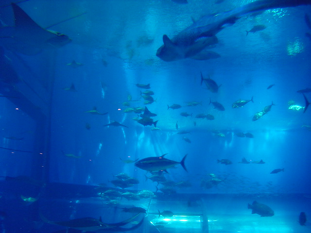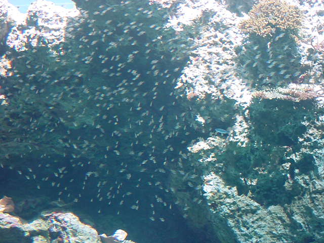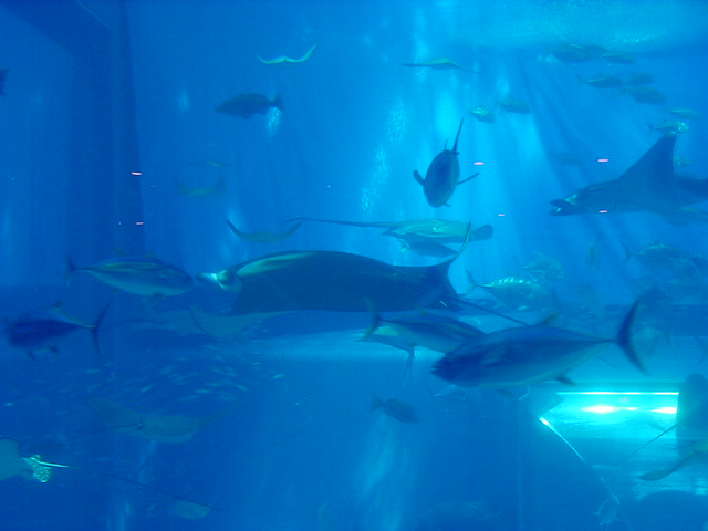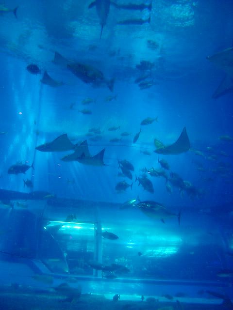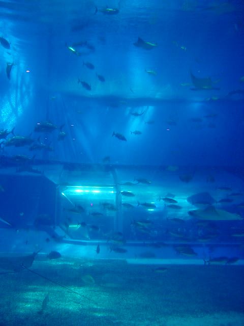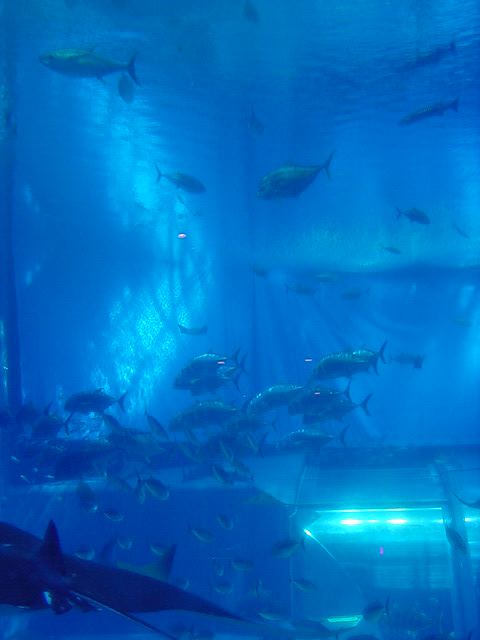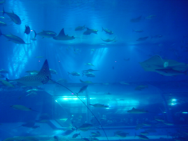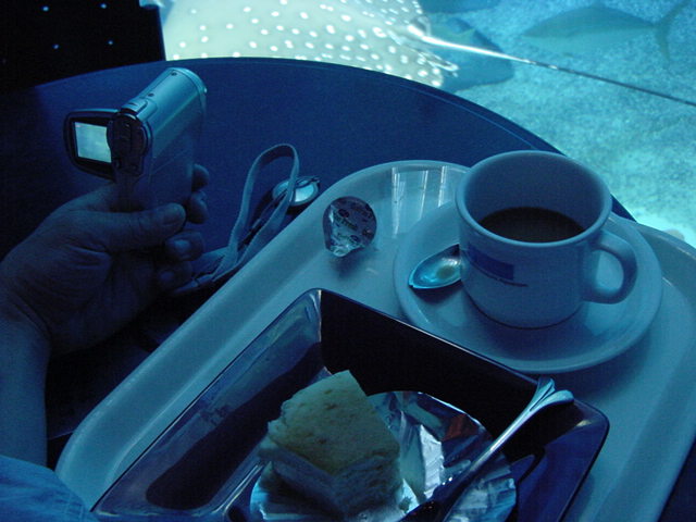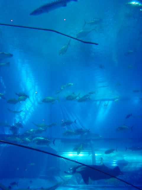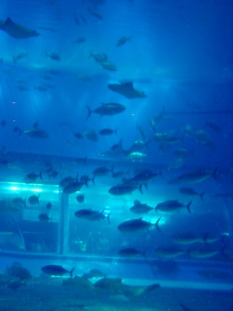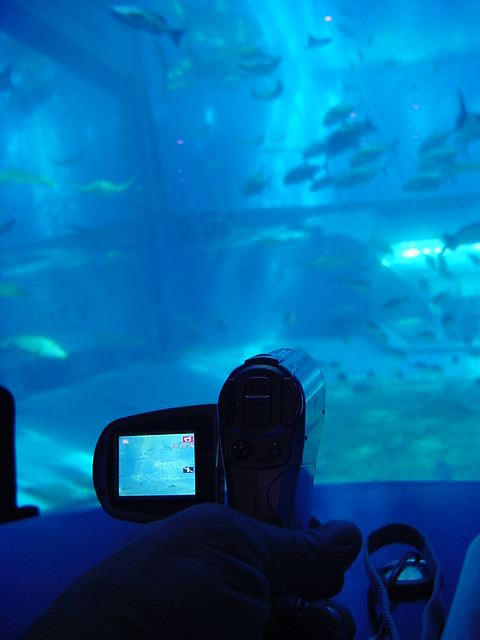 続いて、「黒潮」の巨大水槽を12分間ほど。 これとは別に、レストランの窓からマルマル1時間、回した「癒し映像」もあります。
