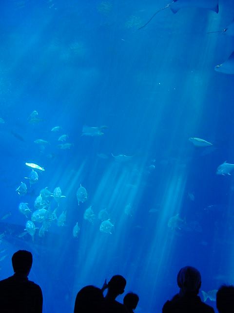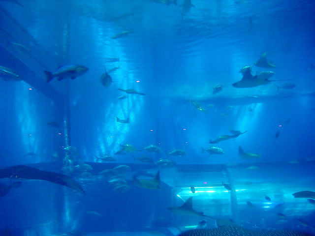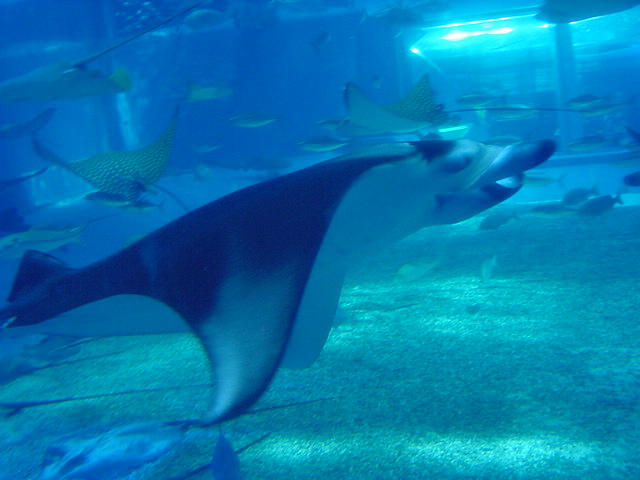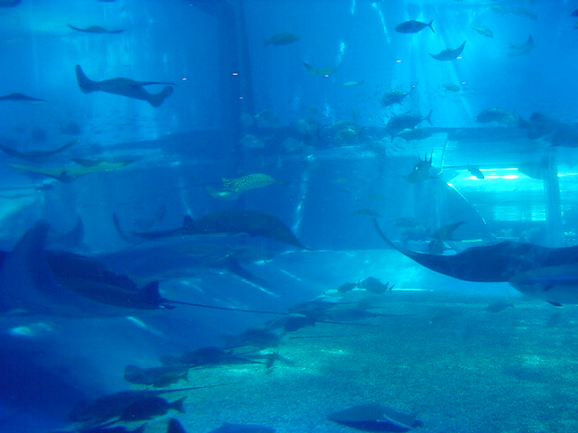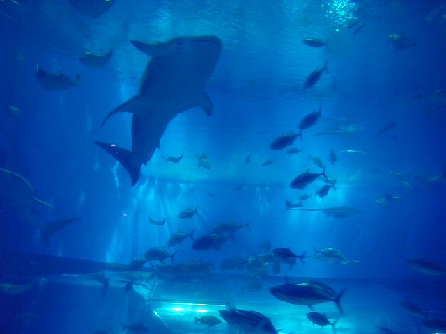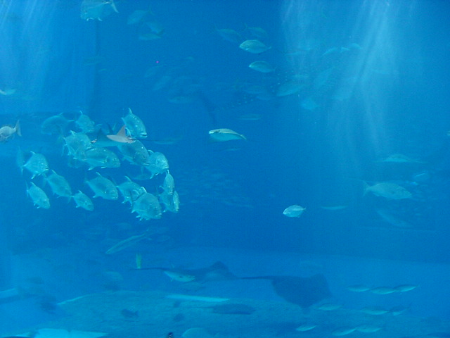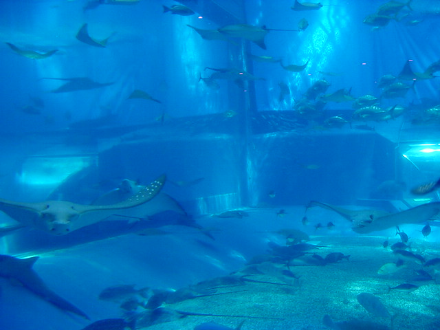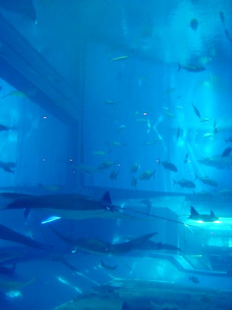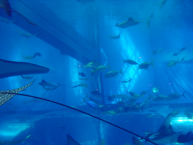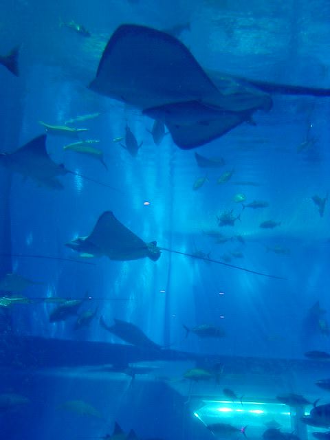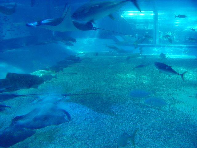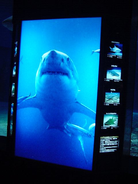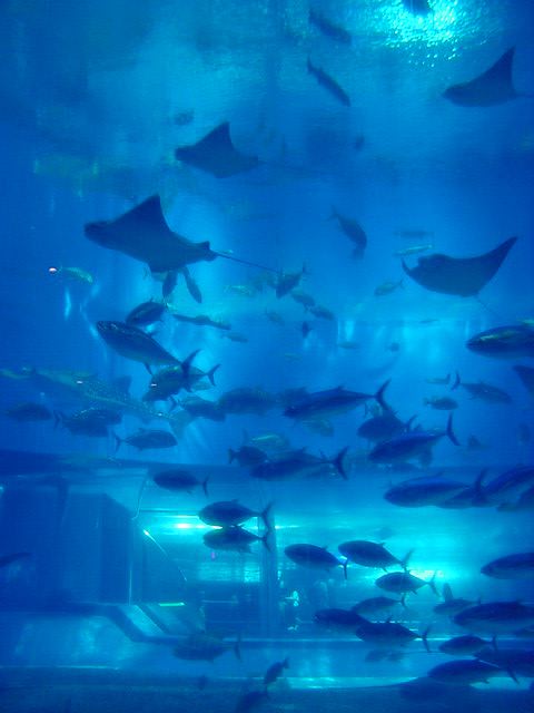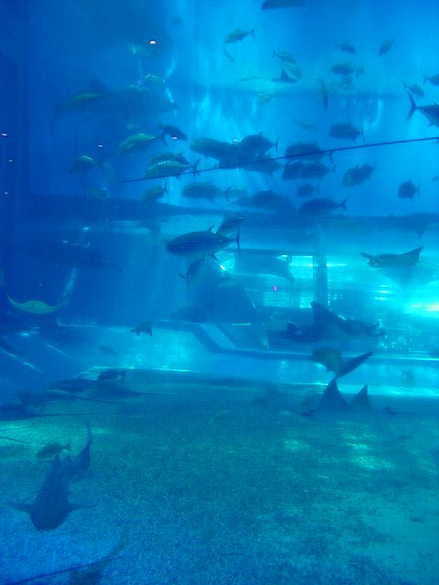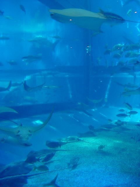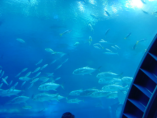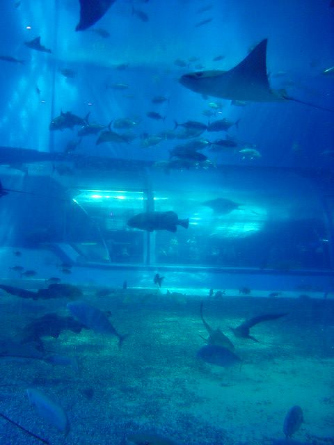 続いて、「黒潮」の巨大水槽を12分間ほど。 これとは別に、レストランの窓からマルマル1時間、回した「癒し映像」もあります。