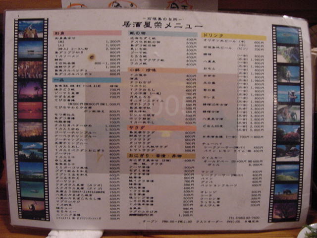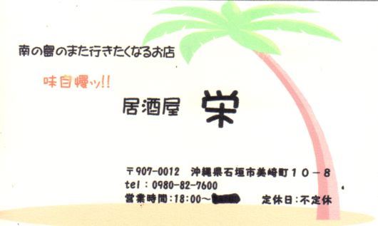 この晩の夕食も、ネットで調べていて、「石垣に行ったら[栄]に行け」という某掲示板の書き込みを信じて、行きました。 実は前夜、金牛の前に立ち寄ったところ、まだ早くて開店していなかったので、2日がかりとなりました。 さすがに噂通り、石垣牛のタタキも含めて、ここも美味しかったです。 ★ ★ ★ ★ ★ ★ ★ ★ ★ ★ ★ ★ ★ ★ ★ ★ ★ ★ ★ ★ ★ ★ ★ 2010年2月17日この日は、ホテルを経由していたレンタカーで、島内をのんびり一周しました。 あいにく雨模様で、後半はどしゃぶりになったりしましたが、自分でコントロールできるのが幸いして、 いろいろアドリブで楽しみました。あちこちで配っている無料情報誌のマップを頼りにしました。