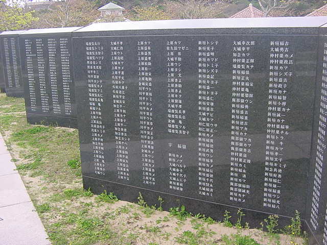 市民・将兵の区別なく、沖縄戦で死んでいった人々全ての名前の刻まれた平和の礎を前にして、