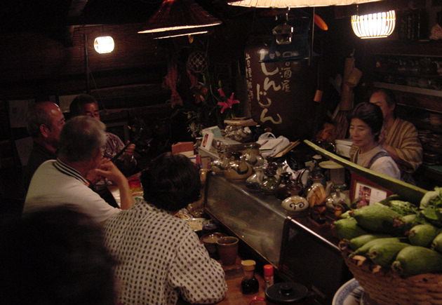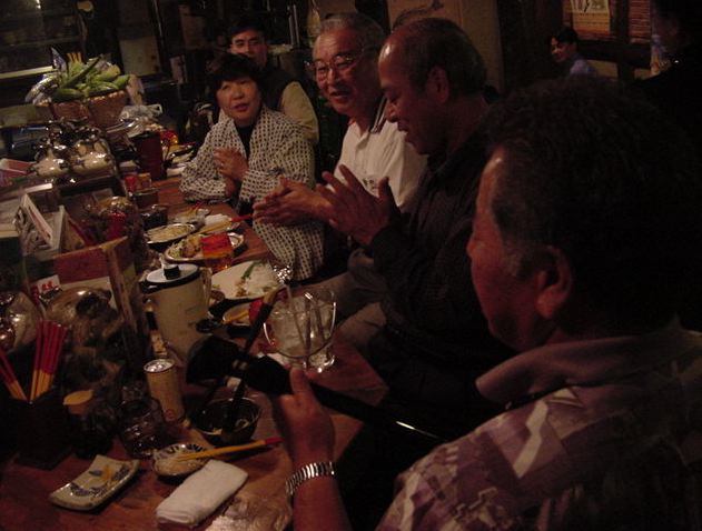 学生たちは満腹すると夜の国際通りに繰り出し、僕はいつものようにカウンターに移って、さらに泡盛を堪能しました。