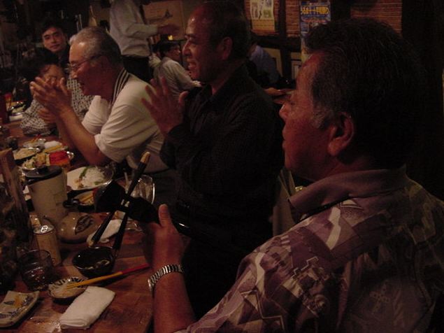 いよいよ最後の夜は、宜野湾にあるライブハウス「島唄」にバスで向かいました。