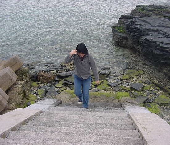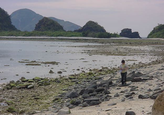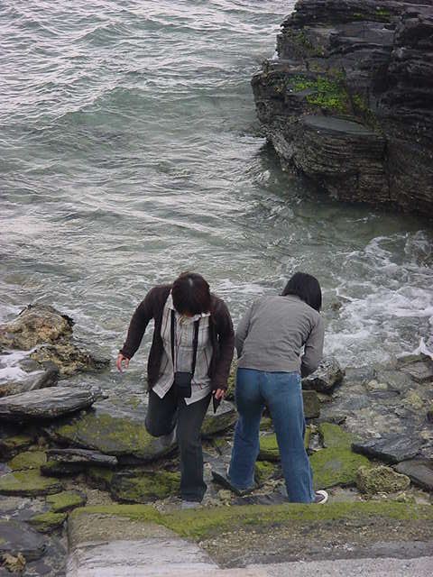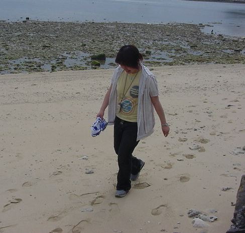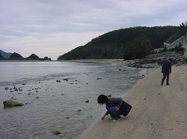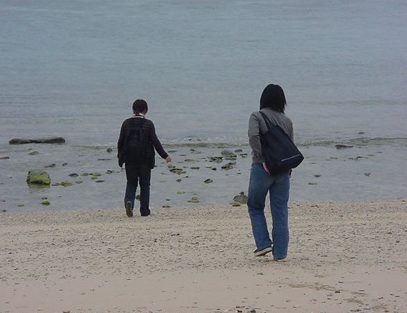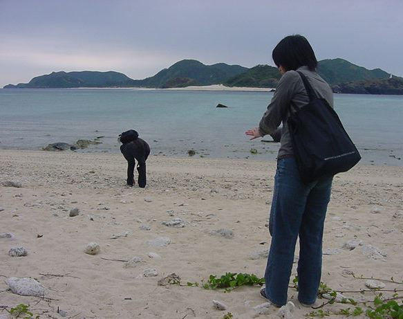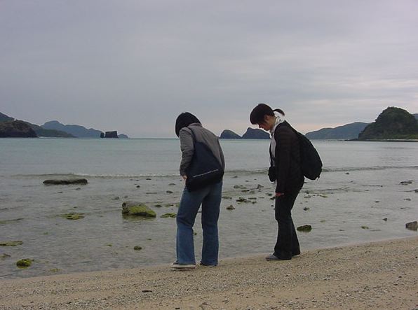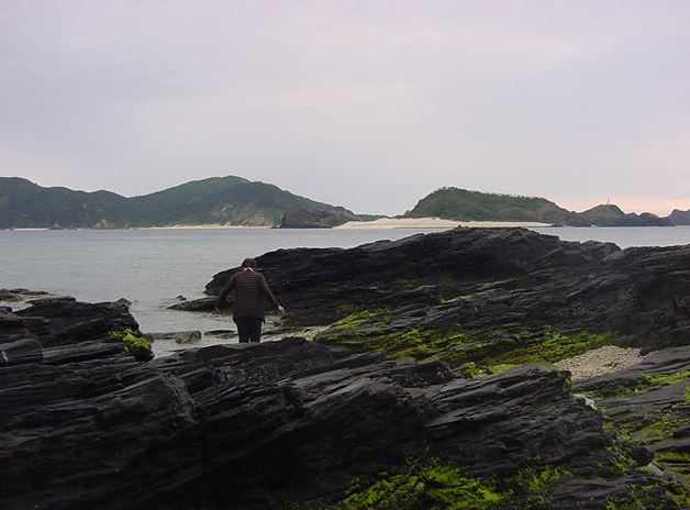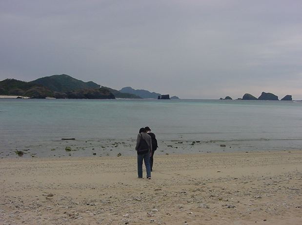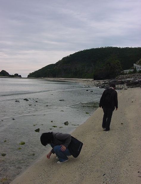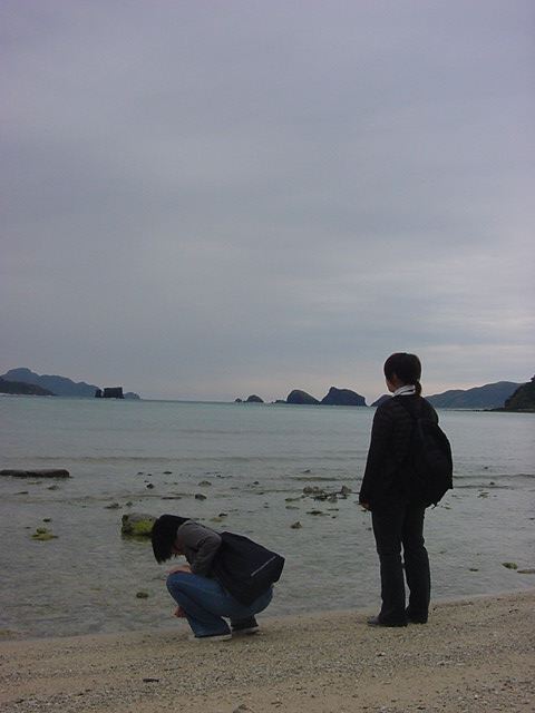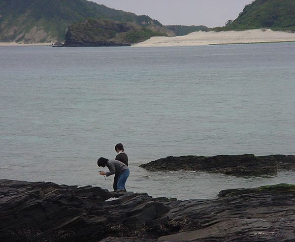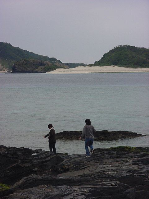 展望台の眺めを堪能したところで、再び浜に下りて、そこから学生2人は遠く離れたところで、
