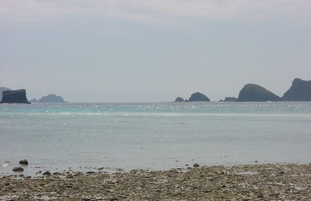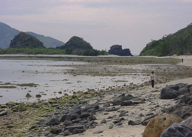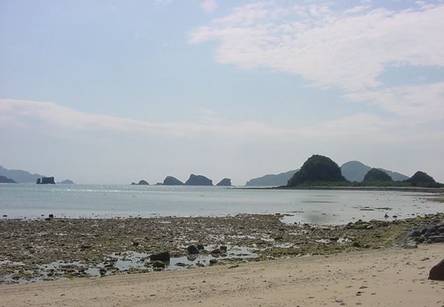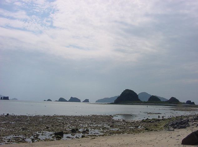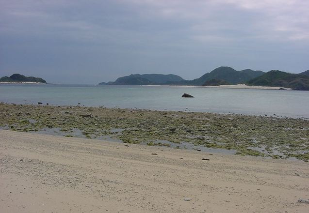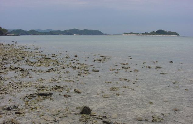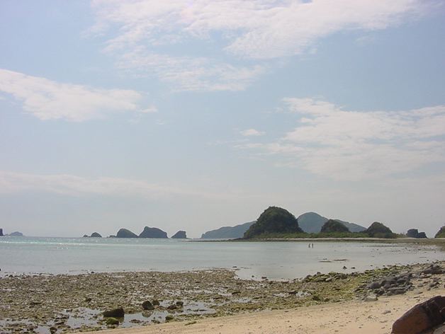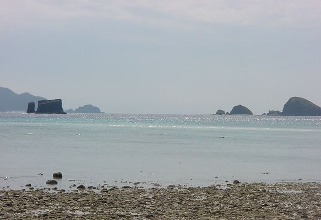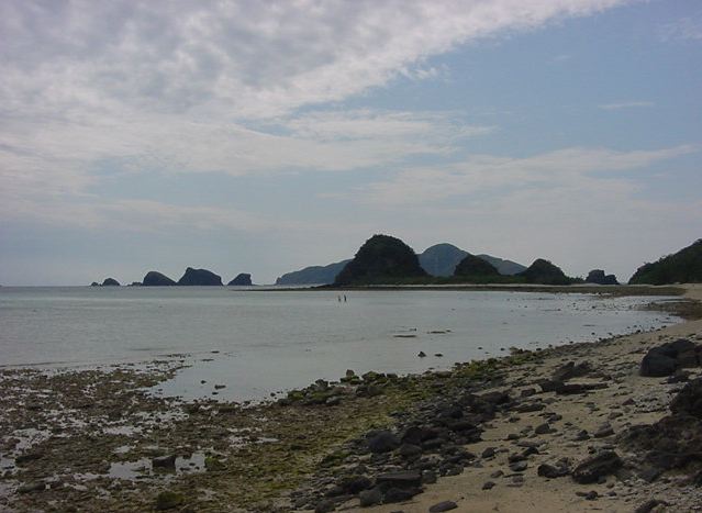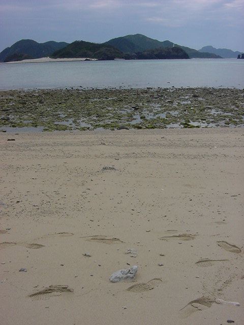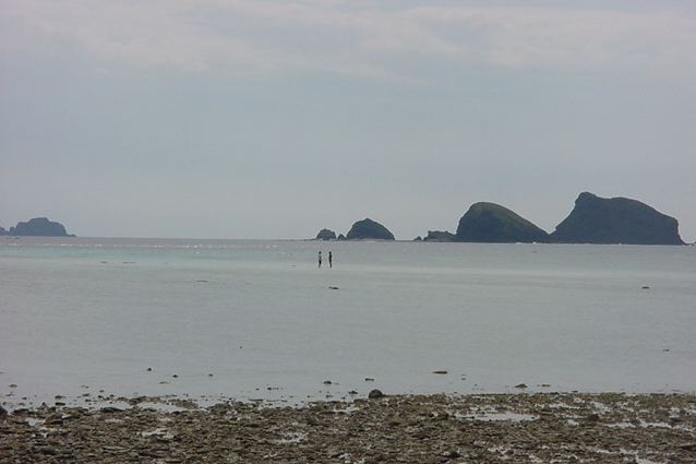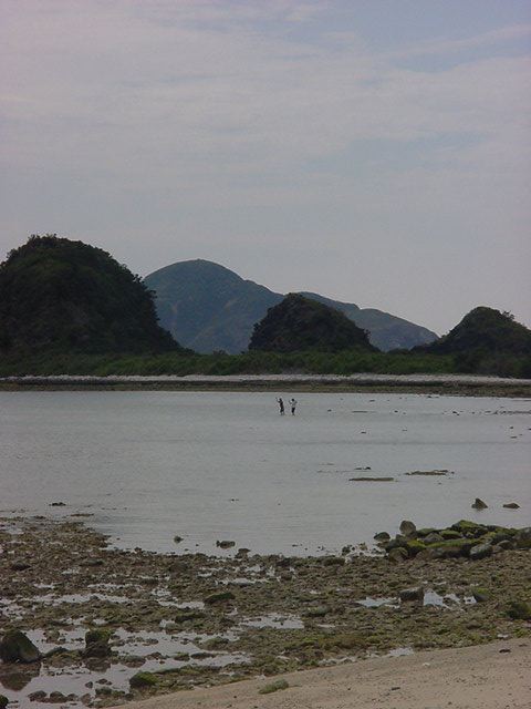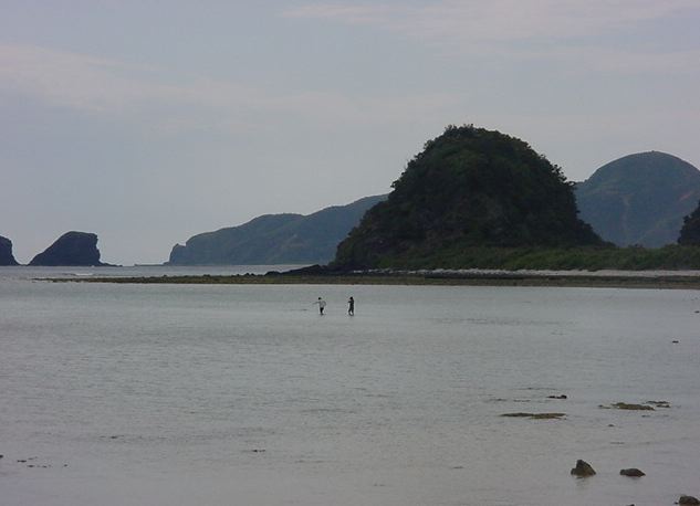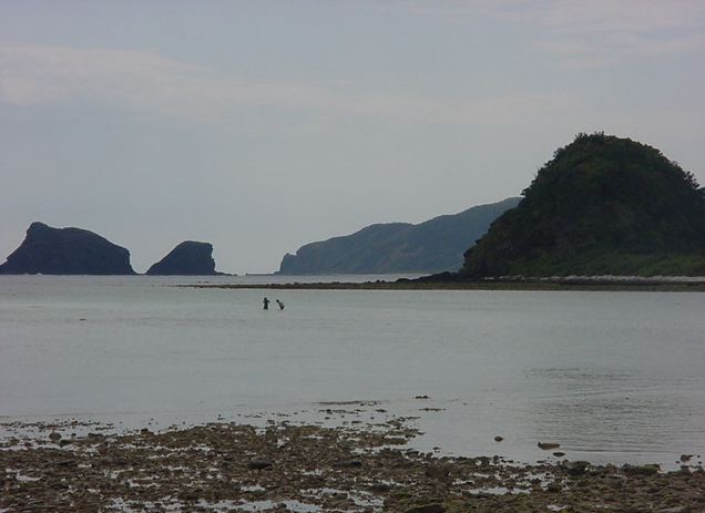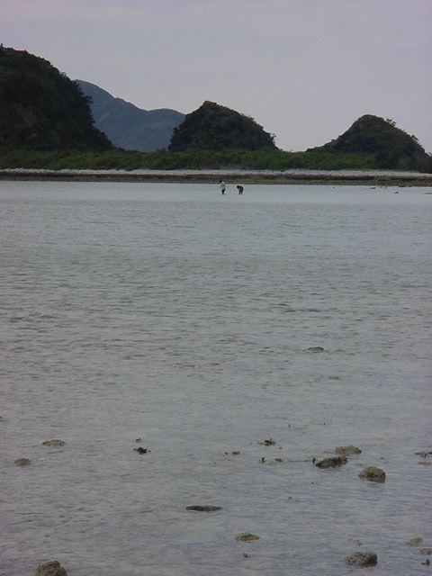 浅瀬を沖合いに歩いて行きました。ちょうど干潮時刻でした。