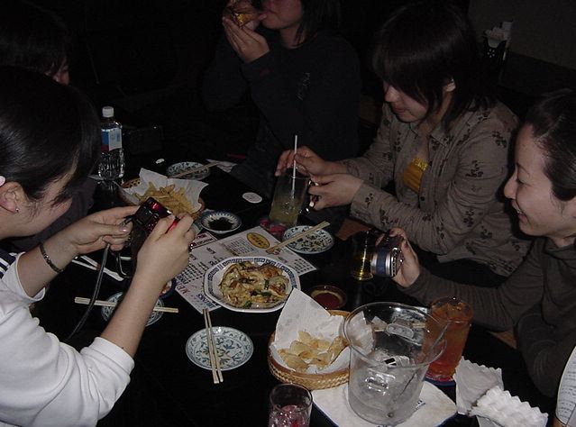 学生はそれぞれデジカメにカメラ付き携帯(一人は光学カメラも、もう一人はDVカメラも)、