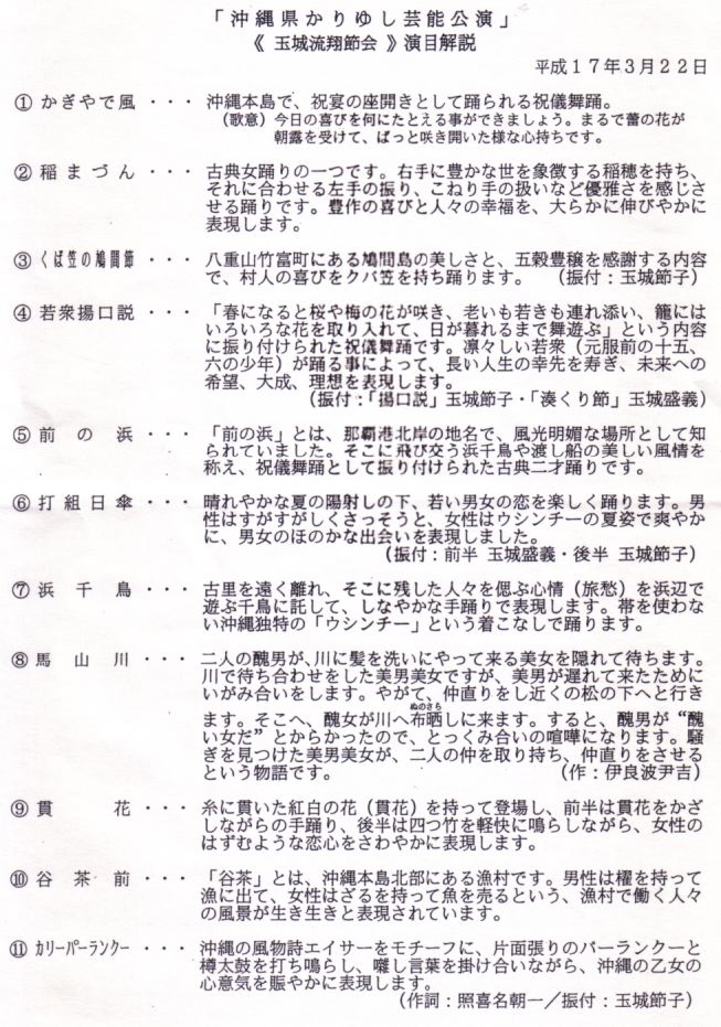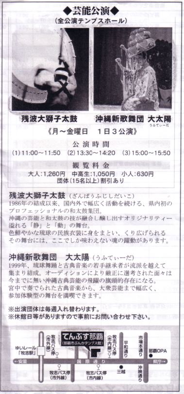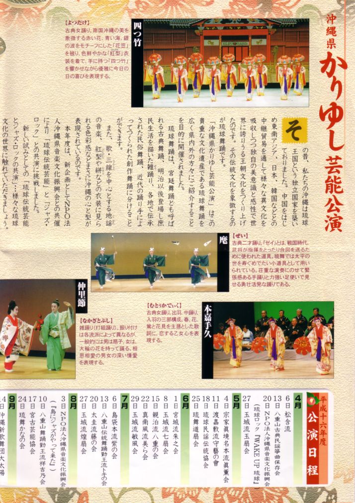 なお、この「沖縄県かりゆし芸能公演」は4月からは毎週金曜日になるようです。 ★ ★
