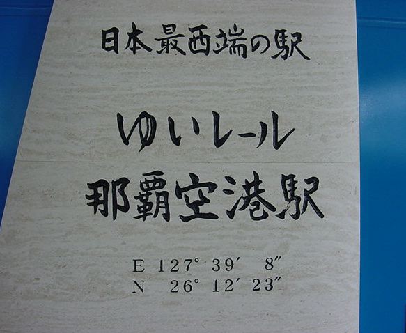 公演は19時開演、開場は18:30ということで時間はタップリあります。 そこで ゆいレール の駅ごとにポスターの貼ってあった、「日本最南端の駅」に行くことにしました。 沖縄に ゆいレール が出来たことで、それまで九州だった「日本最南端の駅」「日本最西端の駅」が 沖縄に移動したわけです。 起点の「那覇空港」駅が「日本最西端の駅」なのですが、ここから ゆいレール は、いったん南下してから北上するために、次の「赤嶺」駅が「日本最南端の駅」となり、 隣り合った駅だけで「日本の東西南北端の駅」4つのうち2つも制覇できてしまうのです(^_^)。 ★ ★ ★ ★ ★ ★