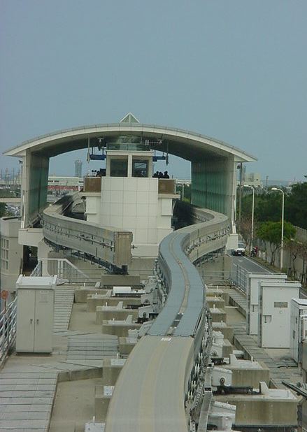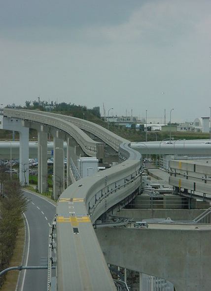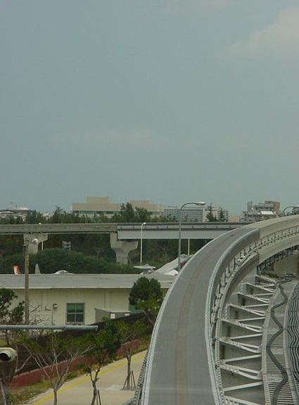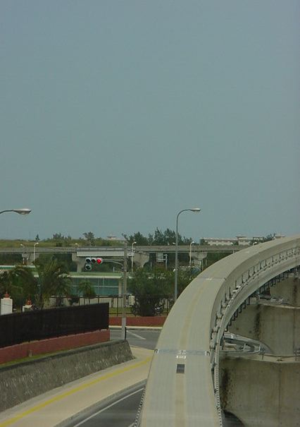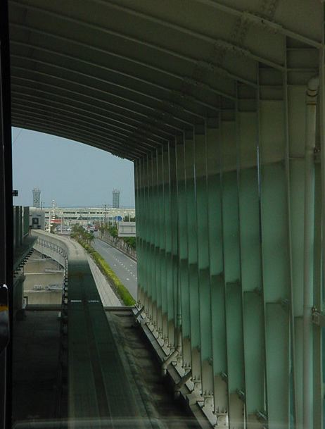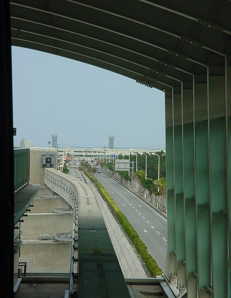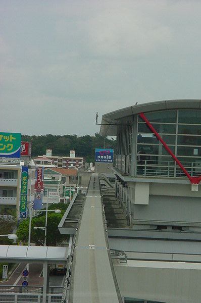 首里の駅に着きましたが、ここから歩いて首里城に行く元気もありません。 終点なので、降りた ゆいレール は折り返しの始発となり、 確実に最前列の席に座れることに気付いて、とりあえず反対側の終点である那覇空港まで、 車窓を撮りながら行くことにしました。 ちなみにいつもの事ですが、今回も iPod Shuffle と、 初代iPod を持ってきて、ずっと好きな音楽を聴き続けています。