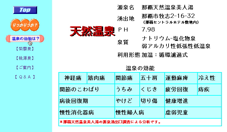ホテルに着いてさっそく部屋から浴衣とスリッパで棟続きの温泉に行き、 2時間ほど、サウナ、ジェットバス、マッサージバス、天然温泉、などを満喫、堪能しました。 まさに天国です。那覇に行く人にはお薦めです。 これで今回のテーマは 「沖縄まで行って温泉三昧」 となりました。(^_^)