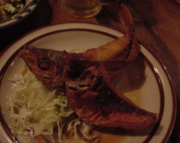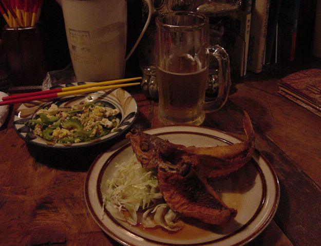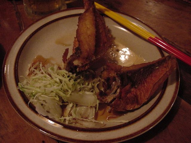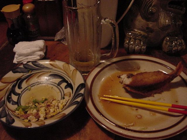 これも沖縄の定番、グルクンの唐揚げ。頭から尻尾まで全部カリカリでいただきます。