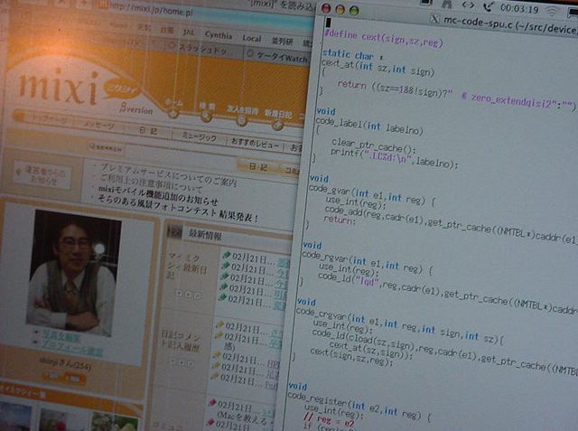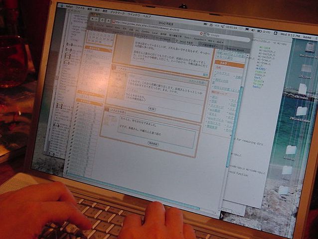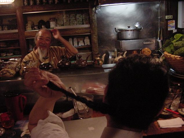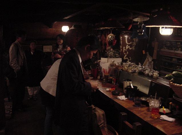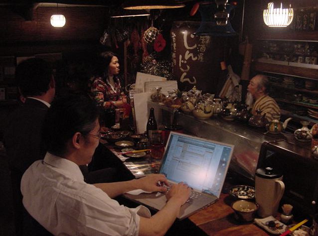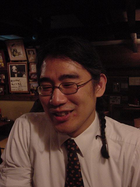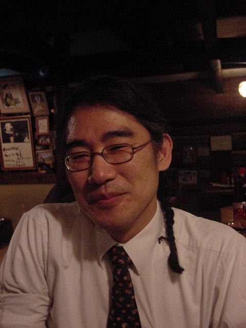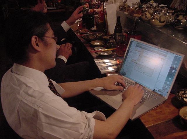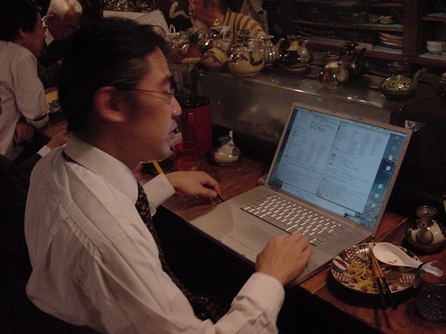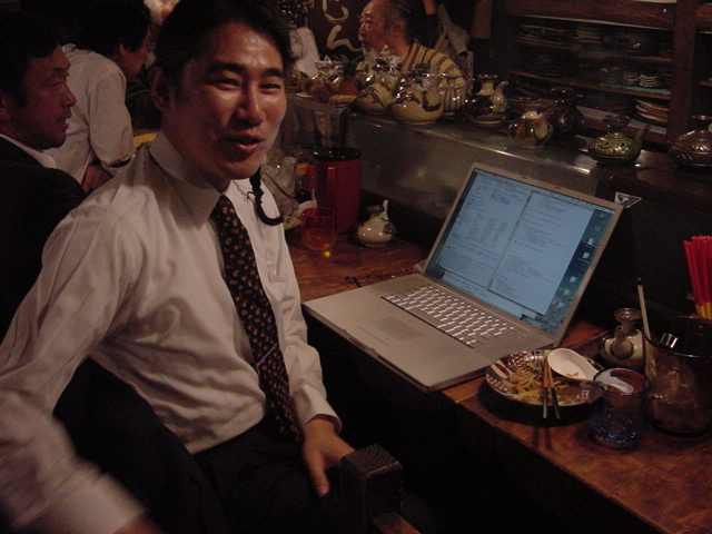 琉球大学の河野先生。カウンターにPowerBookを広げて、じんじんの店内で浮いてました。