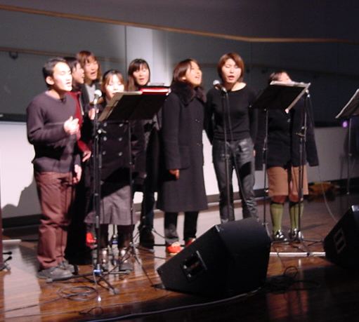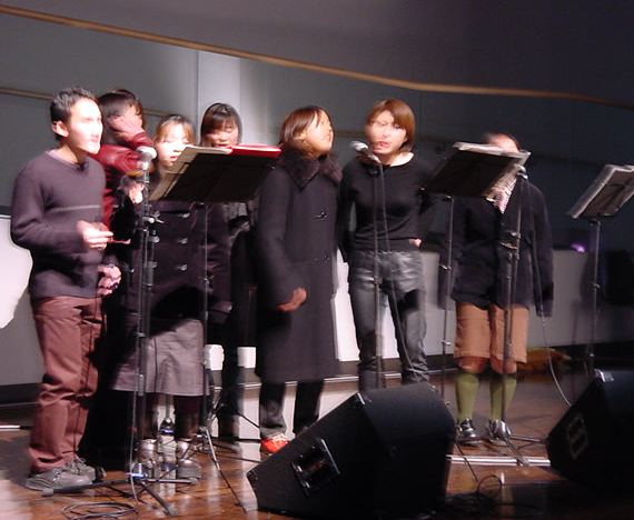 2002年1月24日18:00-20:00に、学生企画の「ごった煮」という イベントがありました。その模様です。でも、去年に比べてだいぶ 小規模になっていてちょっと淋しかったなぁ。(^_^;) 以下は、1106研究室からスタートして、「ごった煮」の 風景スナップ、「瞑想空間」でインスタを展示した「ハトサブレ」の 作品、そしてゴスペルのライブの風景などです。