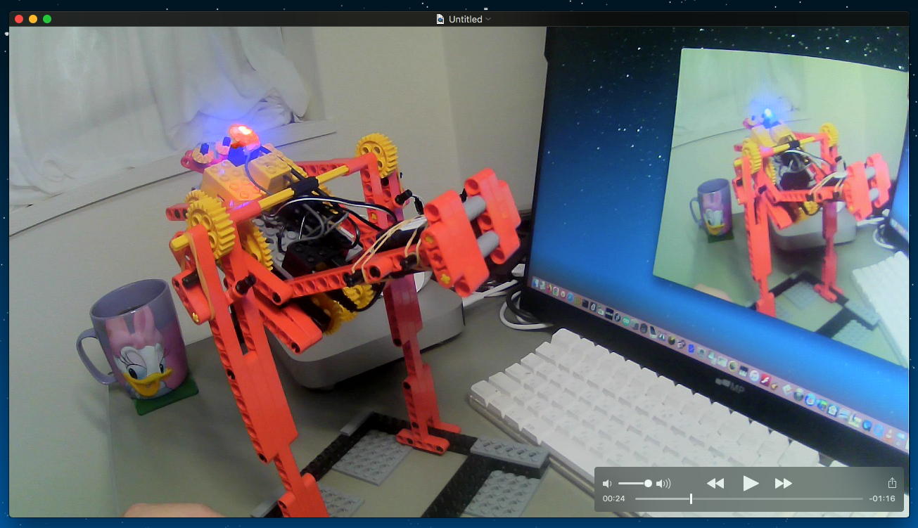 そして今日は7月のミドルコースのロボット教材作りと、あとRP2の教材作りもあった事(→バラしが必要)に気付いたのだが、昨日は「オムニホイール」ロボットを見せたものの録画する余裕が無かったので、狭いデスクの上ながら、以下のように記録を撮って、 YouTube動画 にも上げてみた。
