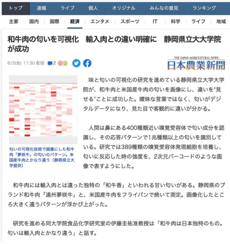 そして午前から静岡に出掛けて、技術士会静岡県支部の講演会に参加した。 内容は上のようなもので、畑違いの分野とはいえ、なかなかに面白かった。 特に「風味のデジタル解析技術」は圧巻で、こういう研究が進んでいる事に感銘を受けた。講演テーマ 持続可能な静岡の「農業」と「食」の最新動向 講演1 「静岡農業の課題と今後必要な取組」 統計結果から見た静岡の農業の課題について解説します。さらに、課題解決の一つとして、「みどりの食料システム戦略」、その中でも特にスマート 農業への取組みについて解説します。 「みどりの食料システム戦略」とは農林水産省で進める、食料・農林水産業の生産力向上と持続性の両立をイノベーションで実現させるための戦略で、 (1)調達、(2)生産、(3)加工・流通、(4)消費、の4つの分野ごとにそれぞれ、(1)資材やエネルギーの脱輸入・ 脱炭素化・環境負荷軽減、(2)高い 生産性と環境負荷の低減が両立した生産体制の構築、(3)ムリ・ムダのない加工・流通システムの確立、(4)環境に配慮した消費の拡大や食育の推進 への取組を行い、このうち生産分野では、スマート農業技術の導入や、脱炭素化と化学農薬・化学肥料低減のための技術開発等が求められています。 講演2 「風味のデジタル解析技術」 研究概要: 「おいしさ」を構成する味や匂いを科学的に解析し、分子レベルで客観的、定量的に設計・評価する技術の開発に取り組んでいます。味や匂いは ヒトの主観や成分分析によって解析されてきましたが、近年では、ヒト味覚・嗅覚受容体の応答を解析することで、直接的なデジタルデータとして扱うことも 可能となりつつあり ます。私たちは約430 種類の全ヒト味覚・嗅覚受容体を対象として応答解析システムを開発し、様々な食品素材、成分の機能を解析 しています。また、2023年に大学発ベンチャー(合同会社 DigSense)を設立し、食品の風味を言語化し、ペアリングやマッピングなどの解析ができる AI(F-index)の提供を開始しま した。 講演概要: 味と香りで構成される「風味」はヒトの繊細な感覚であるがゆえに曖昧で捉え所が無いものと思われがちですが、近年では、分子感知メカニズム に基づいてデジタルデータとして扱うことも可能となってきています。本講演では、味と香りの分子感知メカニズムを概説した上で、風味のデジタル解析技術 として我々が開発を進めている、味覚・嗅覚受容体の応答評価システム、および風味言語化AIをご紹介します。