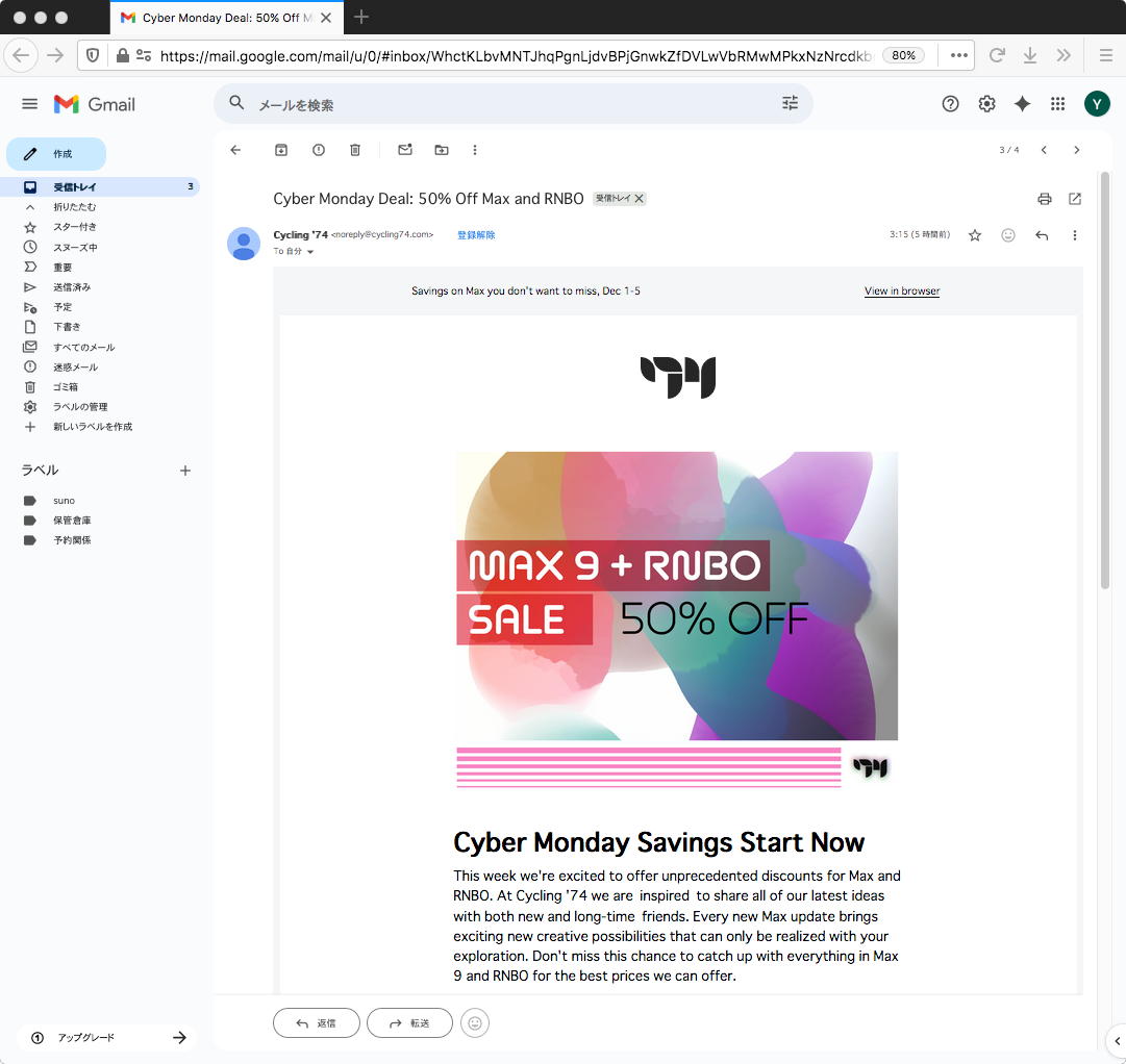 今日も今日とて、KickStarterの新製品広告MLが届くが、けっこう以前に来たものとの重複もあって、なかなかここに取り上げるものは出てこない。 最近の傾向として、「Made in Japan」というのが増えてきていて、ベンチャー以下の「工房」的なプロジェクトが進出しているようだ。 Cycling'74からは「12月1日までのキャンペーンでMax9+RNBOがお安いでっせ!」というのも届いた。