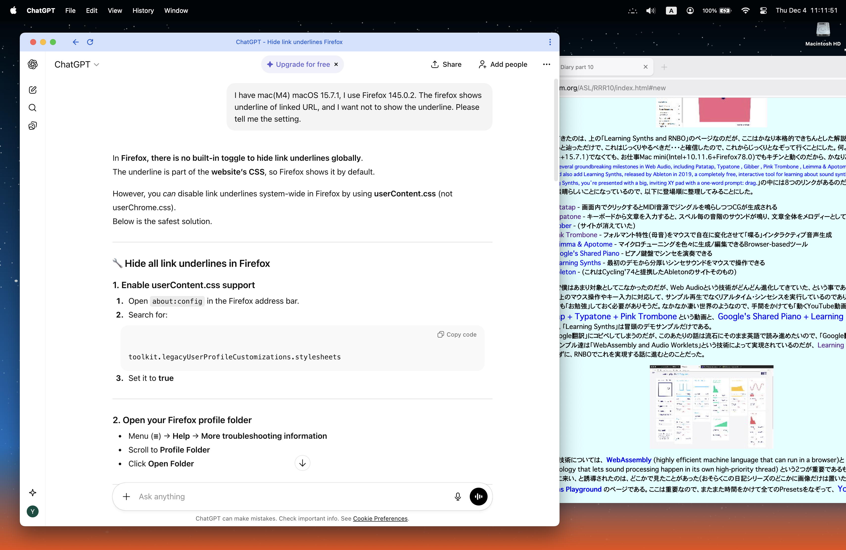 そして今日はフト思い付いて、 こんな動画 を撮ってみた。 defaultでgoogleのアカウントだけは残しているものの、他は「履歴をクリア」(キャッシュもクリア)した状態で、ブラウザFireFoxを強制終了してから再起動して、YAHOOとか5ちゃんに行った時に、アクセスの裏でcookieとかキャッシュが増殖している様子である。