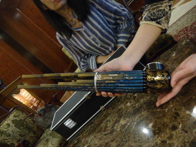万博会場「夢洲」駅まで地下鉄を1回乗り継いで30分ほどで行ける「長堀橋」駅に近くにそれぞれ宿を取った我々は、東野さんのホテルのロビーで合流したが、そこで初めて、東野さんがレクチャーで現物を紹介/演奏するスペシャルな「笙」を知った[57]。